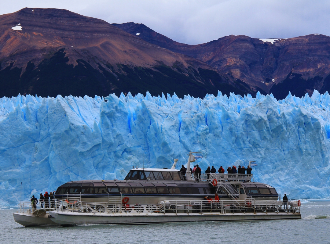 Otra opción destacada será una navegación de día completo por el Lago Argentino, explorando los imponentes glaciares Upsala y Spegazzini. A bordo de una embarcación panorámica, disfrutaremos de vistas espectaculares mientras recorremos estos paisajes majestuosos. Durante la navegación, habrá la posibilidad de disfrutar de un almuerzo opcional en medio de este entorno incomparable.