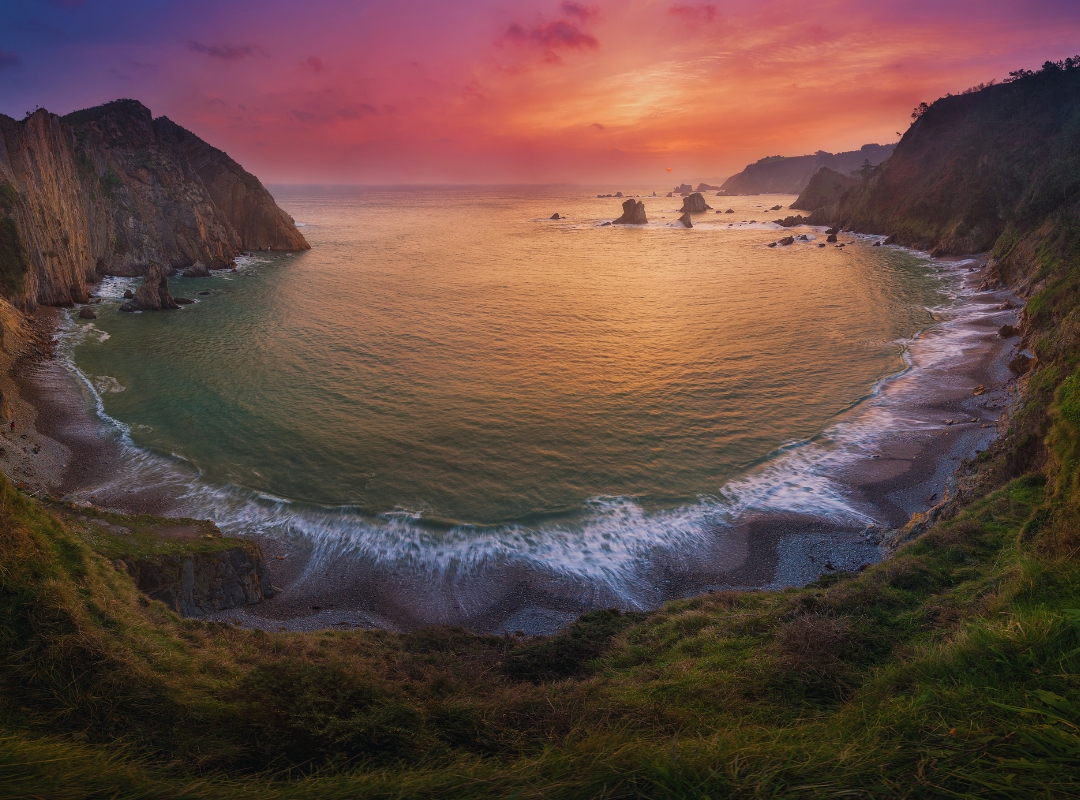 En la jornada de hoy cambiamos el paisaje montañoso por la costa más salvaje de Asturias. Una ruta que nos irá enseñando las esculturas que el mar ha ido esculpiendo en la roca: arcos, islotes, puentes y balcones naturales.