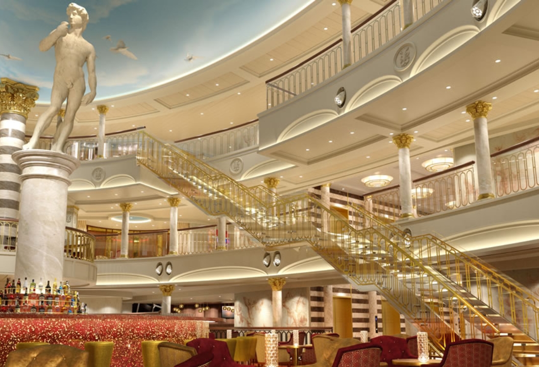 A bordo, podrá deleitarse con una variedad de restaurantes gourmet y bares temáticos, incluido el exclusivo Aperol Spritz Bar. Experimente la emoción de ser protagonista en nuestro teatro de tres plantas o relájese en nuestra tranquila zona de spa y piscinas.