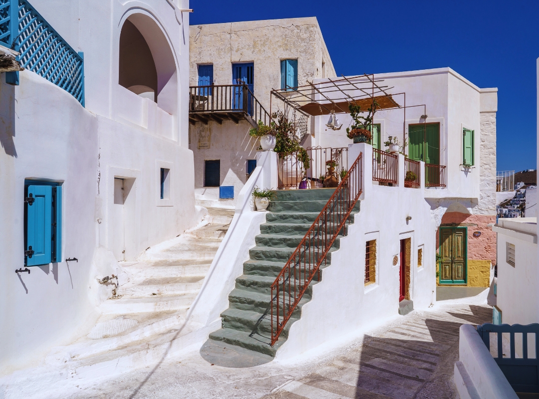 Déjate cautivar por sus calles estrechas con casas blancas y puertas azules, en contraste con el azul profundo del mar Egeo. Explora los encantadores pueblos como Fira o Oia, famosos por sus impresionantes vistas y mágicos atardeceres.