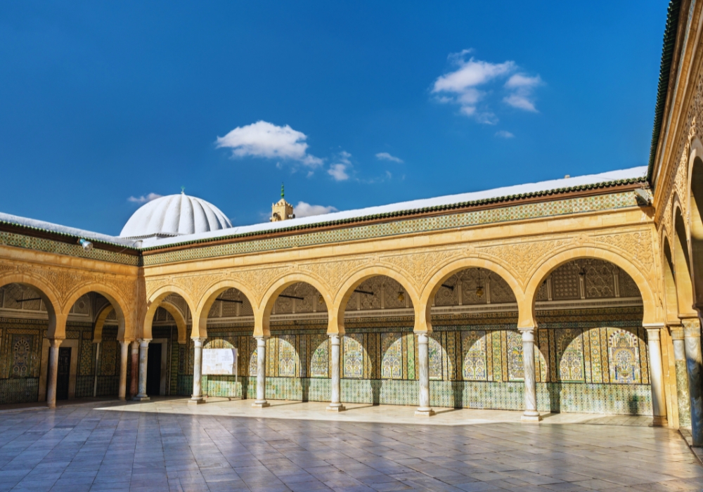 Aquí exploraremos los Aljibes de los Aghlabíes, una fascinante obra de ingeniería antigua, y la majestuosa Gran Mezquita de Kairouan, una obra maestra de la arquitectura islámica. También visitaremos el Mausoleo del Barbero, un lugar de gran devoción con hermosos azulejos.