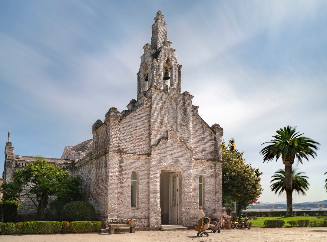 A continuación, visitaremos la famosa isla de La Toja, conocida por sus productos cosméticos elaborados con las aguas termales. No podemos perdernos la Capilla de las Conchas, un emblema de la isla, completamente decorada con conchas de vieira.