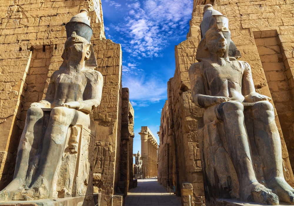 A continuación, veremos los Colosos de Memnon, imponentes estatuas que representan al faraón Amenhotep III y que han estado erguidas por más de 3.500 años. El Templo de Karnak, dedicado al dios Amón, fue el centro más importante de adoración en Egipto desde las dinastías del Imperio Nuevo y alberga una impresionante sala hipóstila de 23 metros de altura con 134 columnas en su interior. Además, visitaremos el Templo de Luxor, más pequeño que Karnak pero conectado a este a través de una majestuosa avenida de esfinges con cabeza de carnero, también conocida como la Avenida de las Esfinges.