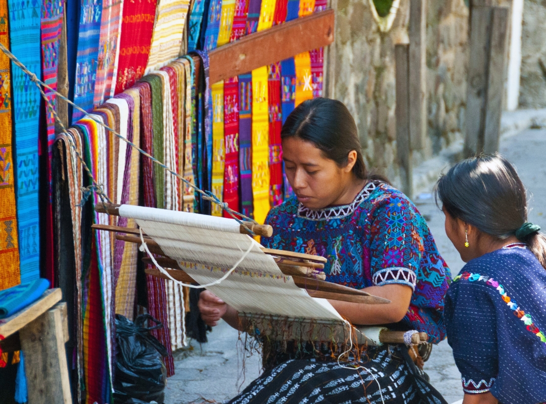 Tu destino serán algunos de los doce pueblos que rodean el lago, cada uno vibrante con la vida maya y sus característicos trajes típicos. Visitarás Santiago Atitlán, el más popular, enclavado entre volcanes, donde se venera al Santo Maximón, una fusión de creencias católicas y chamánicas. Su mercado maya es una explosión de colores, sonidos y productos artesanales.