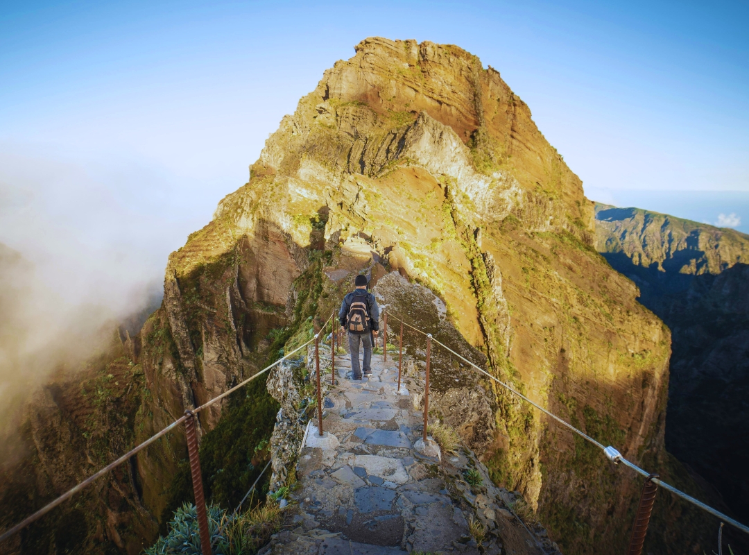 También visitaremos Santana, conocido por sus emblemáticas casas de tejado de paja. Estas construcciones de origen agrícola son símbolo de la isla y nos transportarán a otra época. Seguiremos hacia el Pico do Arieiro, el tercer punto más alto de Madeira, con sus 1.818 metros de altitud. Desde este mirador, contemplaremos un paisaje espectacular de montañas y nubes flotando bajo nuestros pies.