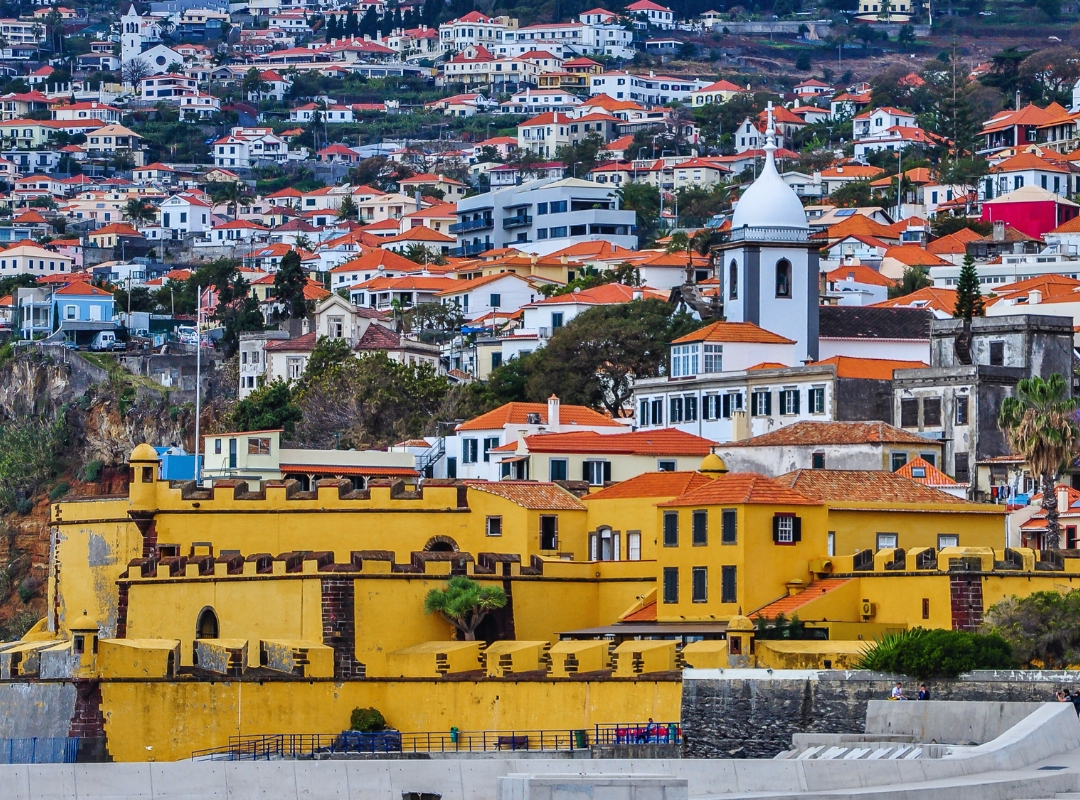 Recorreremos la Rua de Santa Maria, una calle repleta de arte urbano, donde las puertas pintadas por artistas locales transforman el barrio en una galería al aire libre. Visitaremos la Fortaleza de São Tiago, una imponente construcción amarilla que protegía la ciudad de ataques piratas. Finalizaremos en la Avenida do Mar, con su elegante paseo marítimo y vistas al puerto.