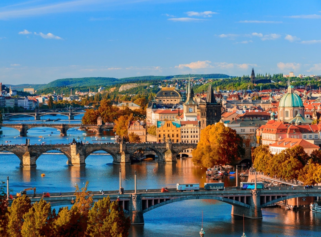 Tras el desayuno en el hotel, nos adentraremos en el corazón de Praga acompañados por un guía local. Pasearemos por la Plaza de la Ciudad Vieja, donde la Iglesia de Nuestra Señora de Týn se alza majestuosa, y cruzaremos el emblemático Puente de Carlos, desde el que se disfrutan unas vistas inolvidables del Moldava y de los tejados rojizos que dibujan el horizonte.
