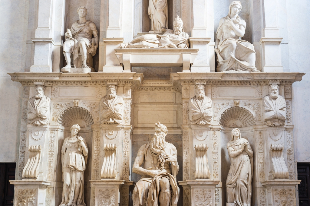 Por la tarde, exploraremos algunas iglesias fascinantes y nos maravillaremos con las obras de arte que albergan en su interior. Además, tendremos el privilegio de admirar la majestuosa escultura del Moisés de Miguel Ángel en una pequeña iglesia, un lugar insospechado para encontrar esta obra maestra.