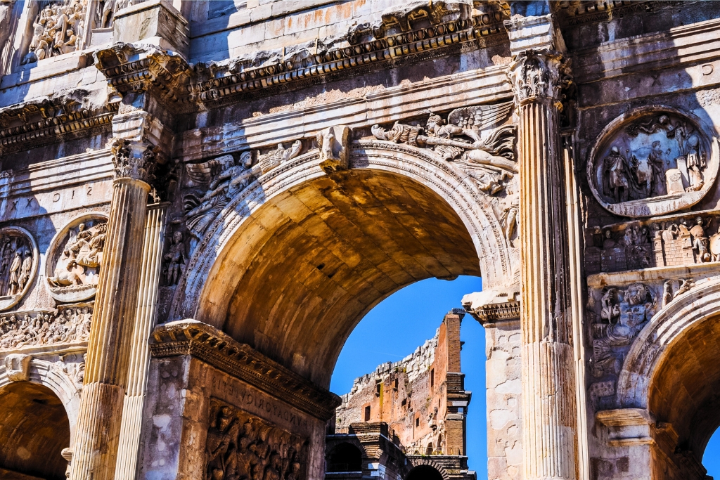 Pero la aventura no se detiene aquí. Visitaremos el impresionante Arco de Constantino, ubicado en la fachada recientemente renovada del Coliseo. Aquí comenzará una emocionante opción: una visita guiada de 3 horas por el Foro Romano y el Coliseo.
