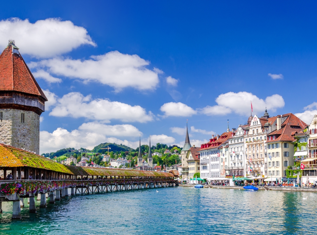 La ruta continúa hacia una de las joyas más queridas del país: Lucerna. Allí daremos un paseo con nuestro guía por esta ciudad de cuento, conocida por su icónico puente de madera, las fachadas decoradas con frescos y un ambiente que parece sacado de una postal.