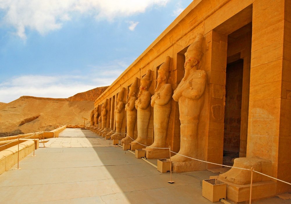 Hoy toca levantarse temprano para partir hacia Luxor siguiendo un plan emocionante. Primero, visitaremos el Valle de los Reyes, un lugar sagrado donde descansan muchos faraones del Imperio Nuevo. Después, iremos al impresionante Templo de la Reina Hatshepsut, tallado en las rocas de Deir El Bahari.