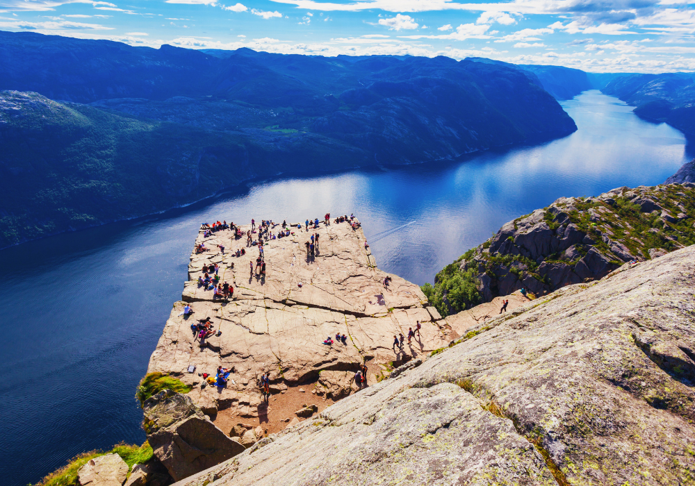Empezaremos nuestra excursión con un crucero por el fiordo Lysefjord y una emocionante caminata al mirador de Preikestolen. Navegaremos por las aguas cristalinas del fiordo mientras pasamos cascadas, acantilados y formaciones rocosas. Después, tendremos la famosa ascensión al Púlpito, situado a 604 metros de altura, para contemplar vistas inigualables.