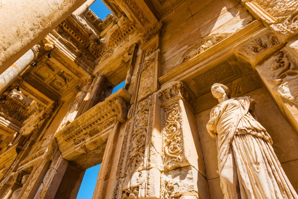 Después, viajaremos a Selçuk para visitar la antigua ciudad de Éfeso, considerada la mejor conservada de Asia Menor. Durante nuestra visita, exploraremos el Templo de Adriano, los Baños Romanos, la Biblioteca de Celso, el Odeón y el impresionante Teatro. Nuestra última parada en Éfeso será la Casa de la Virgen María, donde se cree que pasó los últimos años de su vida.