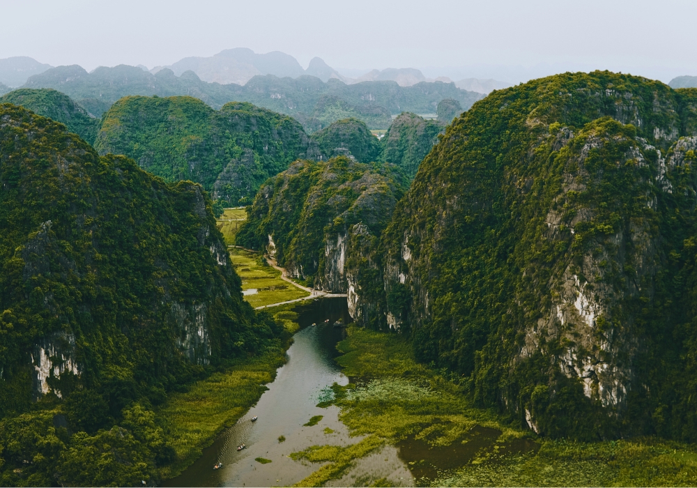 Saldremos por carretera por la mañana temprano hacia la provincia de Ninh Binh. Una vez allí, en Tam Coc tomaremos un pequeño bote de remos para recorrer un espectacular paisaje y descubrir las aldeas locales. Más tarde, visitaremos la pagoda de Bich Dong, lugar que recibió el calificativo de «La segunda cueva más hermosa de Vietnam» por un antiguo rey.