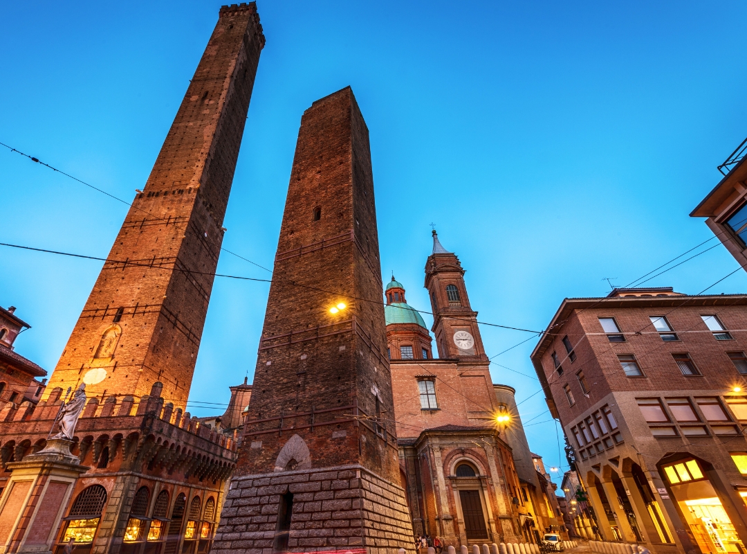 Todo comienza volando desde España hacia Bolonia, la vibrante capital de la región de Emilia-Romaña, famosa por su rica gastronomía y sus pórticos medievales. Tras aterrizar, tendrás tiempo para disfrutar de la ciudad antes de realizar una visita guiada que nos permitirá descubrir sus rincones más emblemáticos, desde la Piazza Maggiore, corazón de la ciudad, hasta la majestuosa Basílica de San Petronio, el Archiginnasio, testigo de la primera universidad de Europa, la Piazza Nettuno con su famosa fuente, la Biblioteca Municipal, el Palacio de Enzo, la Piazza Santo Stefano y las icónicas Dos Torres, símbolos indiscutibles de Bolonia.