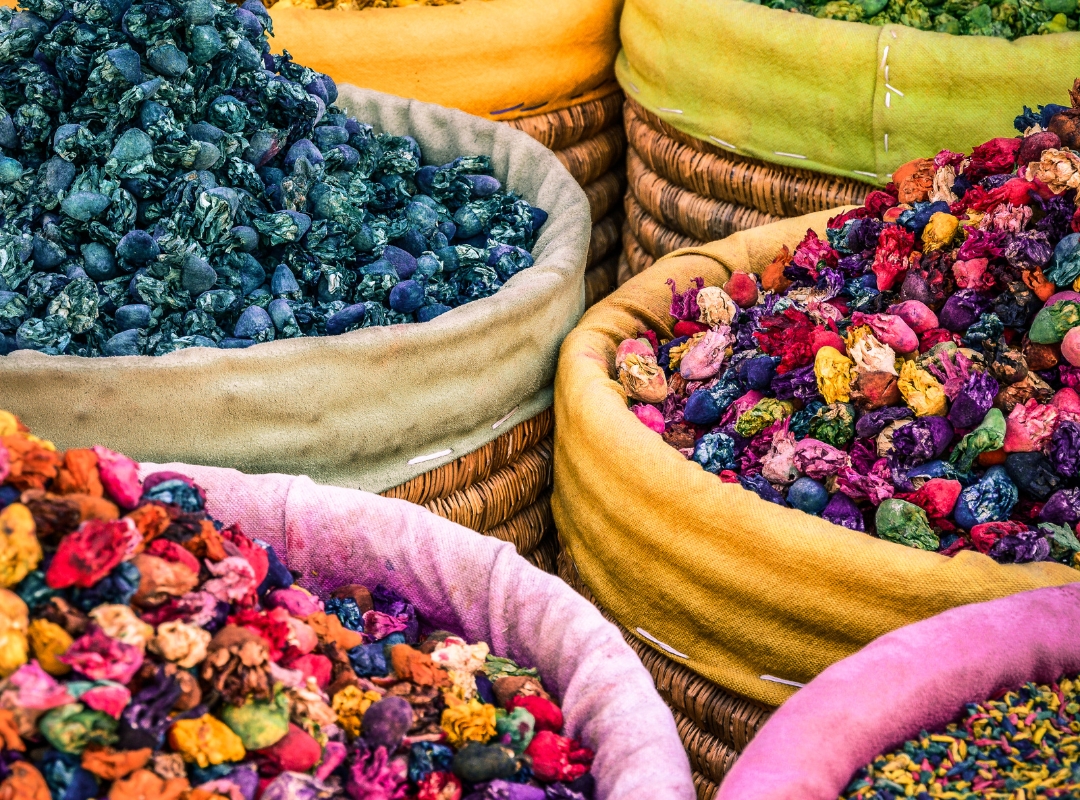 Por la mañana realizaremos la visita monumental, comenzando por el imponente Minarete de la Koutoubia (siglo XIII), hermana de la Giralda de Sevilla y auténtico faro espiritual de la ciudad. Continuaremos hacia los tranquilos Jardines de la Menara y el elegante Palacio Bahía, antigua residencia del visir y magnífico ejemplo del arte musulmán medieval, donde destaca su conocida sala de embajadores. Ya a pie, visitaremos una escuela local para descubrir cómo se elaboran las especias marroquíes y el tradicional aceite de argán.