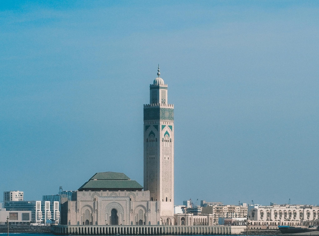 Desayuno en el hotel y salida para realizar una visita panorámica de Casablanca, capital administrativa e industrial del país. Durante el recorrido conoceremos algunos de sus puntos más emblemáticos, como el Parque de Las Naciones, el elegante barrio residencial de Anfa y el animado paseo de La Corniche, un boulevard que discurre junto al mar y ofrece agradables vistas del litoral atlántico. La visita finaliza en los exteriores de la imponente Mezquita de Hassan II, una de las más grandes del mundo. De forma opcional, y siempre que sea posible, se podrá visitar su interior, donde destacan su impresionante techo retráctil y su minarete, considerado el más alto del mundo (entrada no incluida).
